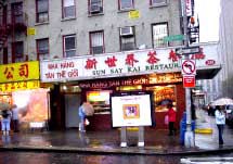 教会を出て 次に向ったところはチャイナタウン。教会の静謐で繊細な空気とはうって変わって、そこはもう、さながらサバイバルの見本市。中国語の看板が賑やかなキャナルストリートを中心に、路上にまでぎっしりと物売りがひしめき、通行人が多すぎて身動きが取れない。雨で商品が濡れようと店の人はお構いなし。買う側も、お馴染みのブランドバッグにPRADOと書かれていようがお構いなしという具合。老若男女入り混じり、多国語が飛び交い、食べ物はじめあらゆるものの匂いでごった返した喧騒の移民街のエネルギーには、いつも圧倒される。