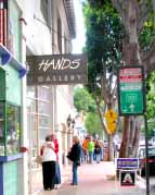 After DARK”のようなイベントができると楽しいだろうなと思う。飲み物片手にライトアップされた首里城を遠く望みながら、路地路地にギャラリーやショップを訪ね歩く特別な晩というのはお洒落である。さて、サンルイオビスポ・ダウンタウンのコンテンポラリーギャラリーで扱われる品目は、絵画や版画、彫刻、ガラス、写真、陶器、シルクストールなどの染織に加え、ジュエリーが多いのも特徴だろう。手の込んだビーズ細工以外にも、高価な貴石やパール、シルバ ー、ゴールドを使った大振りの格調高い作品が多く、欲しくなる一点ものばかりである。絵画も写真も、題材に困らない風光明媚な土地柄とあって、地元アーティストの描く風景画や静物画で盛りだくさん。旅行で立ち寄りじっくり選んで買って行くお客もかなり多いようだ。地元でキャリアの長い画家Julie