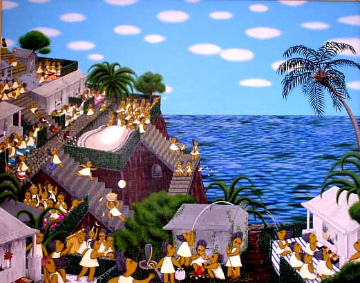or may. This is one of the okinawan traditional celemony named"si-mi(seimei-sai)". Regendaly,the purpose of this is to pray for the ancestors and celebrate families prosperity. Nowadays, the reason why we get together seems rather for our leasure.Chatting,eating and drinking with our ancestors.It's just like picnic. It is not easy for us to take time and prepare many things (make and gring plenty of fiest,etc),neverthless, it is the enjoyable time of the year. |