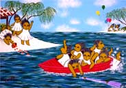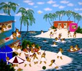 | A boat and Island acrylic on canvas 23cm~16cm |