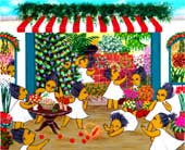 | R87 A flower shop in a holiday acrylic on canvas 27.3cm~22cm |