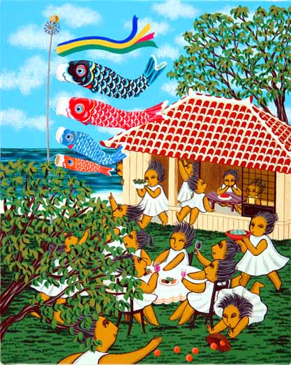 The carp streamers are one of Japanese seasonal tradition to celeblate the children's day.Every family especialy hold sons get start to place the pole to set each streamers in the early April. Family get together around the pole and have a lot of fun every year. One day, we parents became aware of the children got to be very quiet and they seems do not need those seasonal amusement given by the parents.Suddenly, we recognize our sons and daughters are not children anymore.