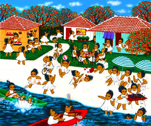 with the people wearing colorful swim suits