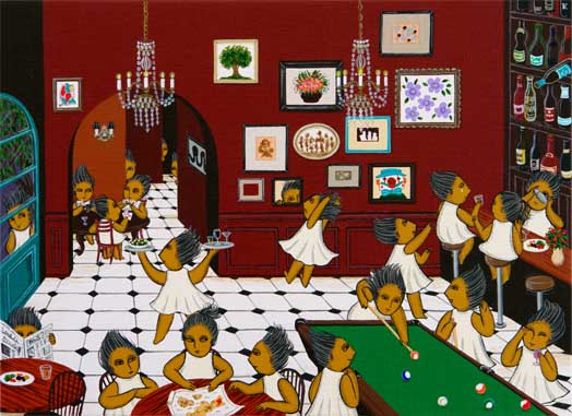 | 賭け事は楽しい。パチンコ・カジノに溺れるのはどうかと思うが、競馬・競艇・競輪と、スポーツ振興につながる賭けもたくさんある。 作為的に創り出す興奮とでもいおうか、ポーカーやマージャンなど頭脳戦を伴う賭けは、人間ならではのゲームだろう。 この絵では、古いつくりの建物内の賭けゲームのできるクラブの様子を描いてみた。暗がり、少人数で息をつめてトランプに熱中する様や壁にかかる怪しげな絵画。部屋の奥からのぞく人など、ちょっとダークな雰囲気が賭け事という緊張を伴う快楽と相まってなかなか面白い作品に仕上がったと思う。 ちょっと参加してみようか。賭けに負けるのは嫌だけど。 |