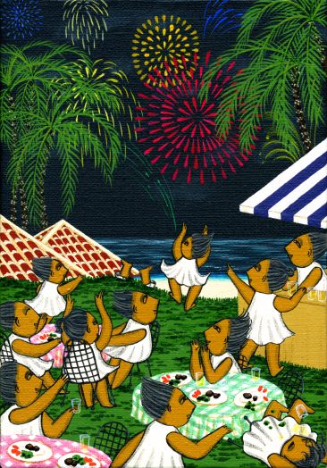 | 本番。沖縄各地で様々なイベントが開催される。音楽イベント、舞台イベント、海のイベント、スポーツイベントetc。そして夏祭り!ビールで盛り上がり、花火で最高潮。飲んだり食べたりを思えば、汗をかくのも悪くない。多少はカロリー消費になるだろう。平和をかみしめながら、お祭りが続けられる世の中をめざすことに思いを馳せつつ楽しみたい。 | |