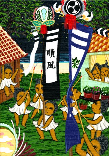 a great harvest between the farming villages.The Naha Great Tug-of- War has a history of 400 years and the weight of the Ropes recorded in the Guinness book. On 2007,the traditional"Ayajo-Tsunahiki" in Ryukyu kingdom revival in Shuri area for celebrate 15th anniversary of Shuri-jo-castle opening.It's unique rule is fight twice and result MUST TO BE Draw.If we fight like that in our ordinary life,the world will be more peaceful! |